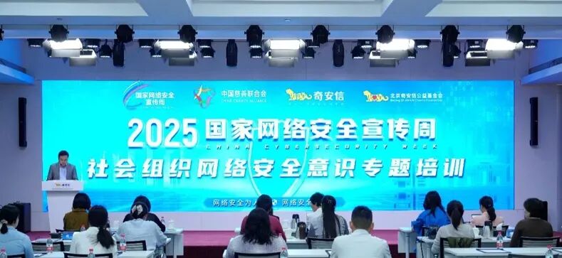 在2025年国家网络安全宣传周期间,中国慈善联合会数字慈善工作委员会联合北京奇安信公益基金会,共同开展“社会组织网络安全意识专题培训”。本次培训创新采用线下与线上的模式,共有300多家社会组织,400余人参会,为公益慈善领域从业者搭建了网络安全知识的学习交流平台。