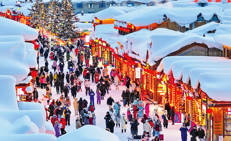 服务消费,一头连着经济,一头连着民生,涵盖餐饮住宿、养老托育、文娱旅游、教育体育、健康服务等领域。2025年,我国居民人均服务性消费支出占居民人均消费支出的比重为46.1%,体现了居民消费从商品消费为主向商品消费和服务消费并重转变。图为2026年1月17日,游客在黑龙江省牡丹江市的“中国雪乡”景区游玩。 新华社发 何华文/摄